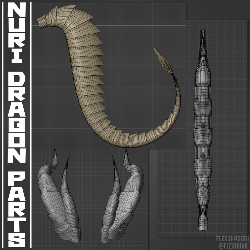 [Multi Base] Nuri's Dragon Horns, Tail & Spine