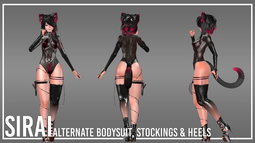 - 2 Styles of Bodysuit, Stockings, Garters & Heels