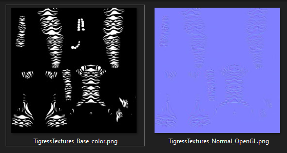 This set includes a normal map and mask for tiger stripe tattoos.