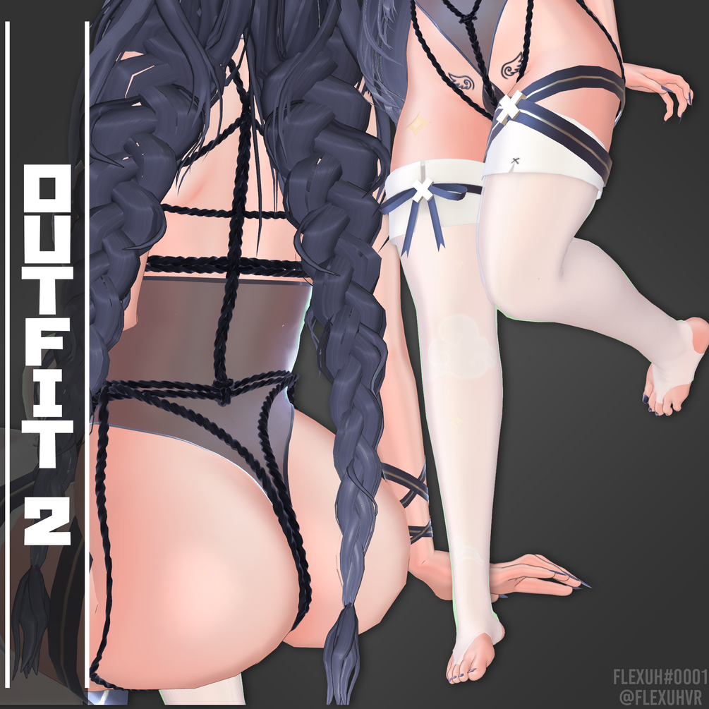This set includes a bodysuit, teddy, sweater, 2 sets of stockings, rope set, chest harness, various ribbon accessories and more.