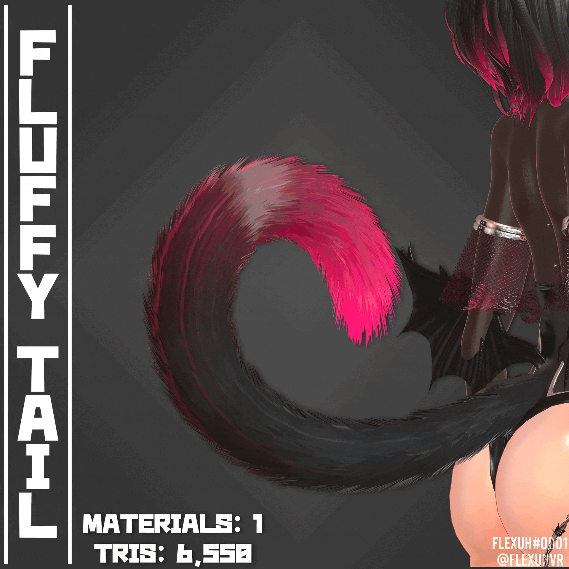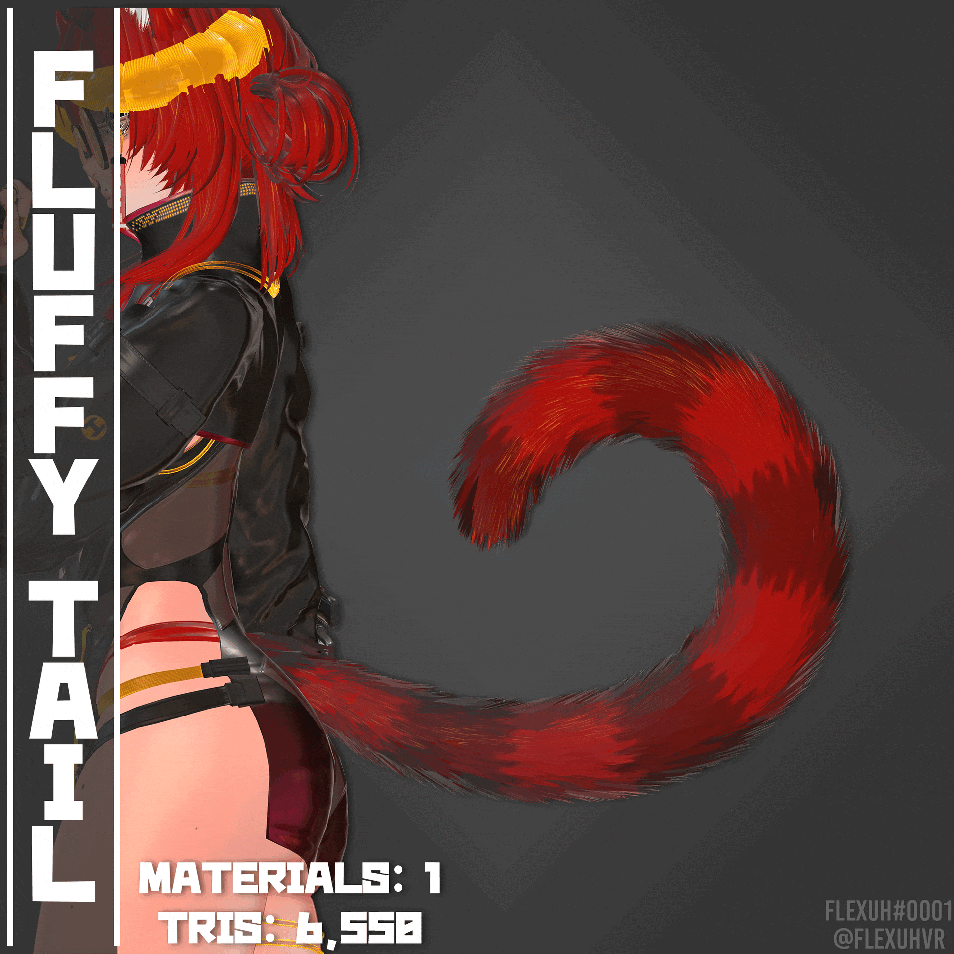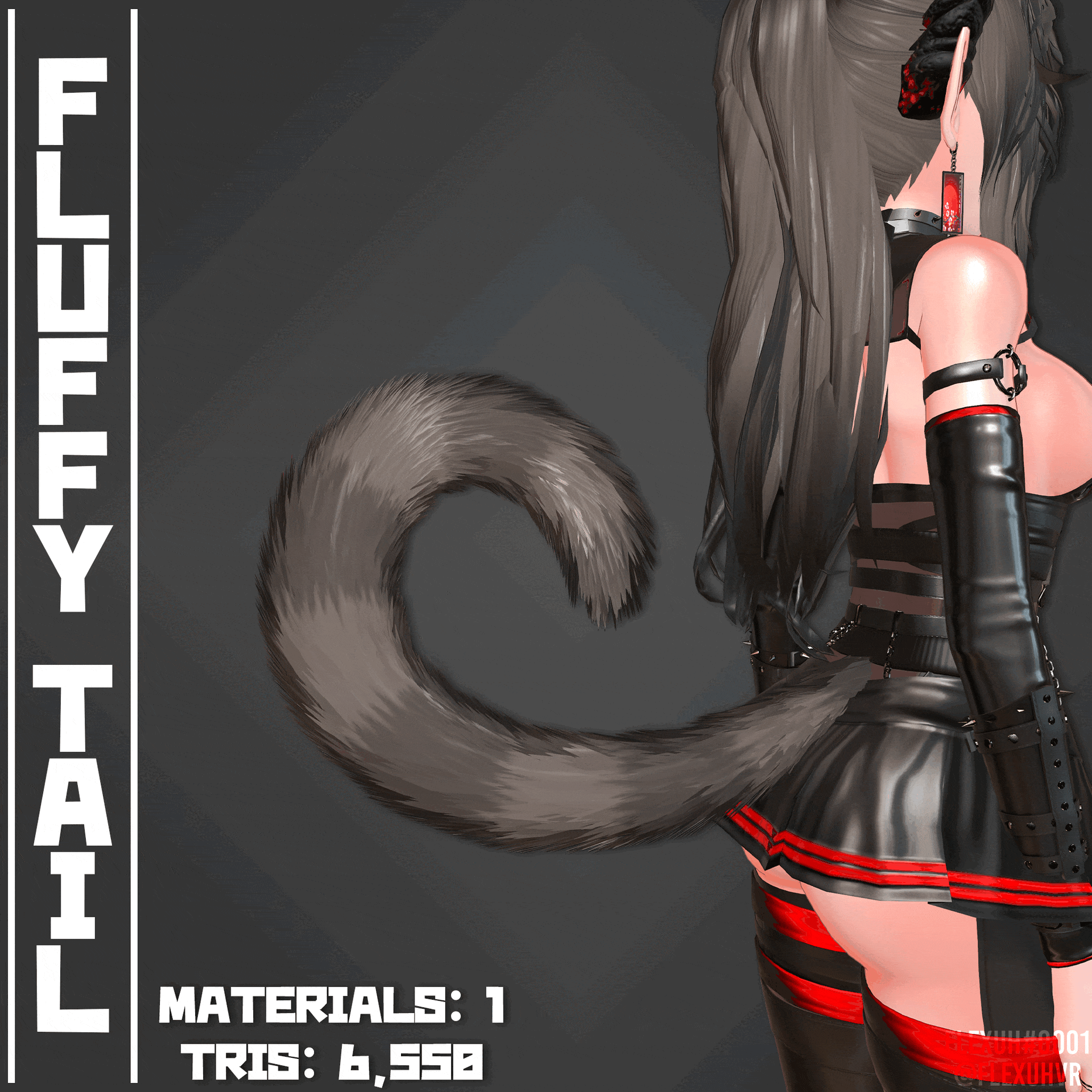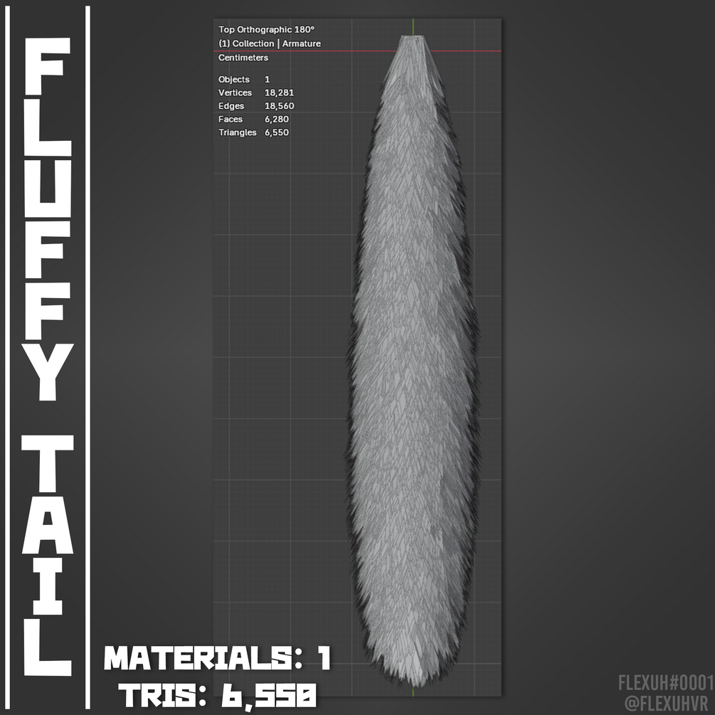 This set includes a fluffy tail, there are blendshapes to make it suit multiple styles: Raccoon/Red Panda, Fox and Cat.