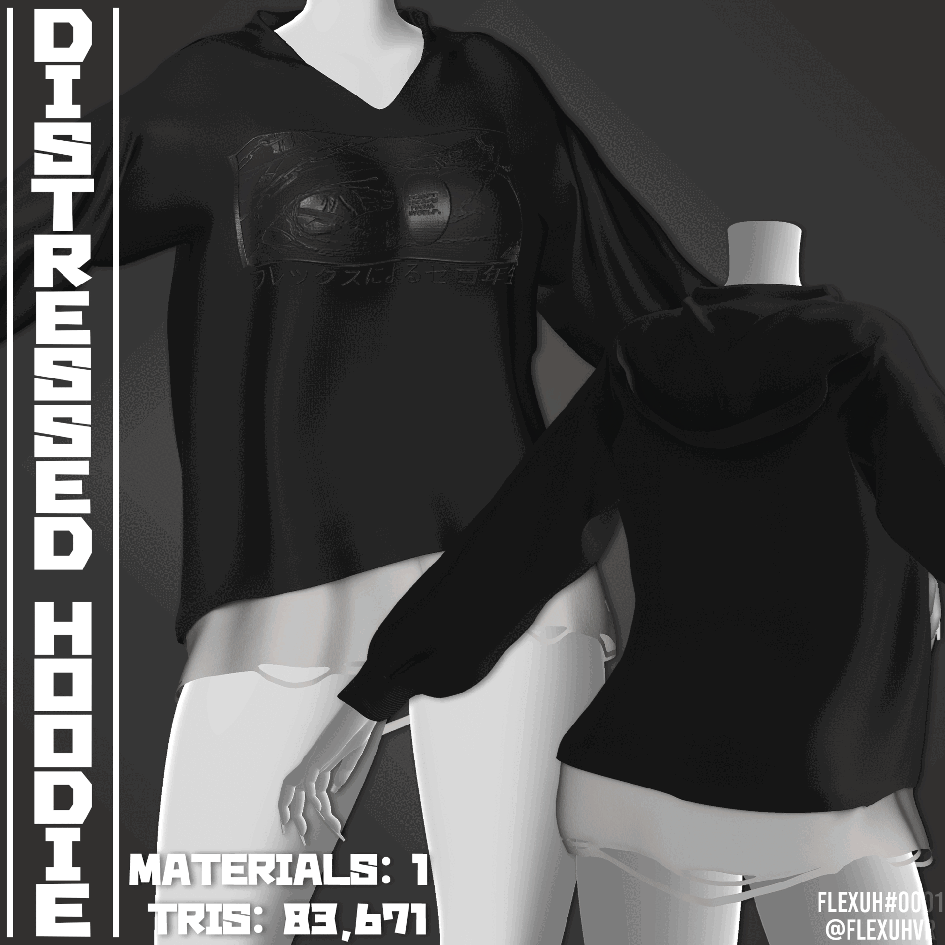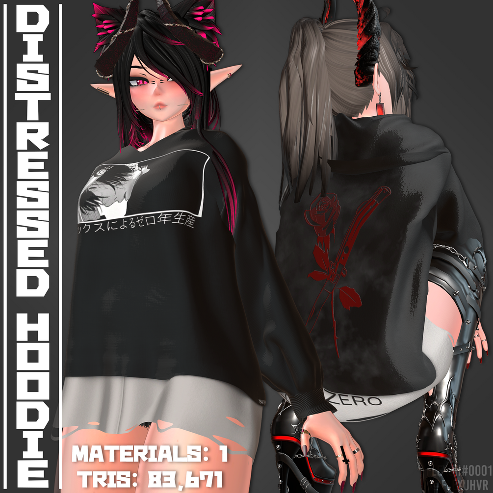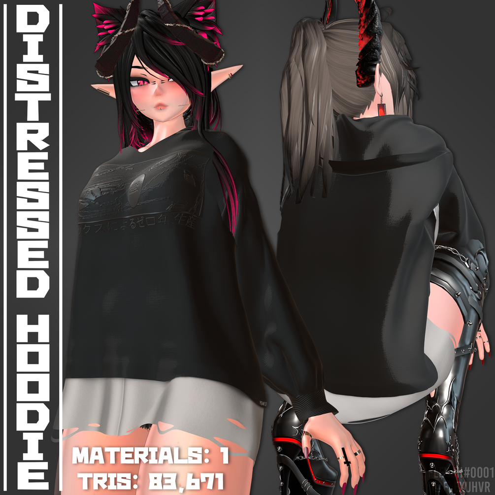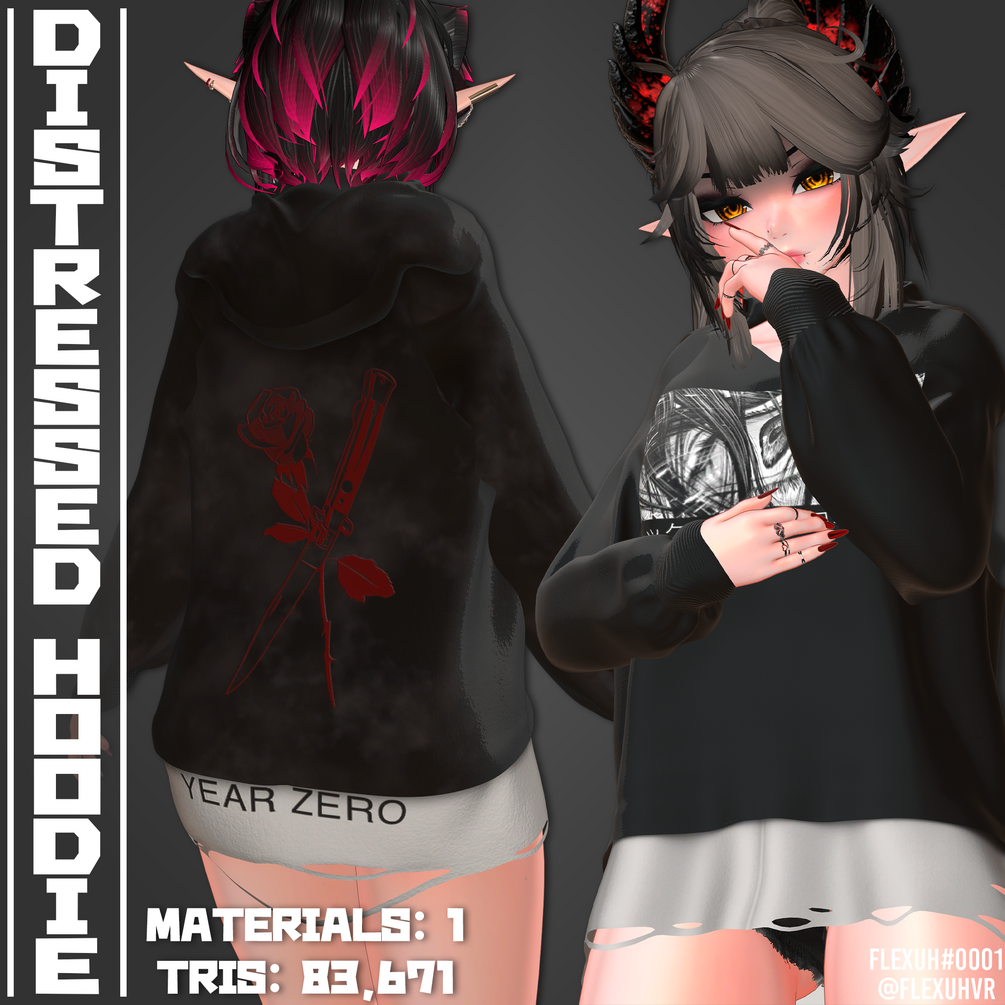 This includes a distressed hoodie with 6 different color-ways.